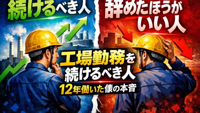 「工場勤務の人生って、このままでいいんかな」「このまま続けた先の末路がちょっと不安やな」そんな将来不安な気持ちでここに来た人も多いと思う。僕も同じように悩みながら、工場で12年働いた。その中で見えたのは、地獄みたいな時期もあれば、普通に悪く...