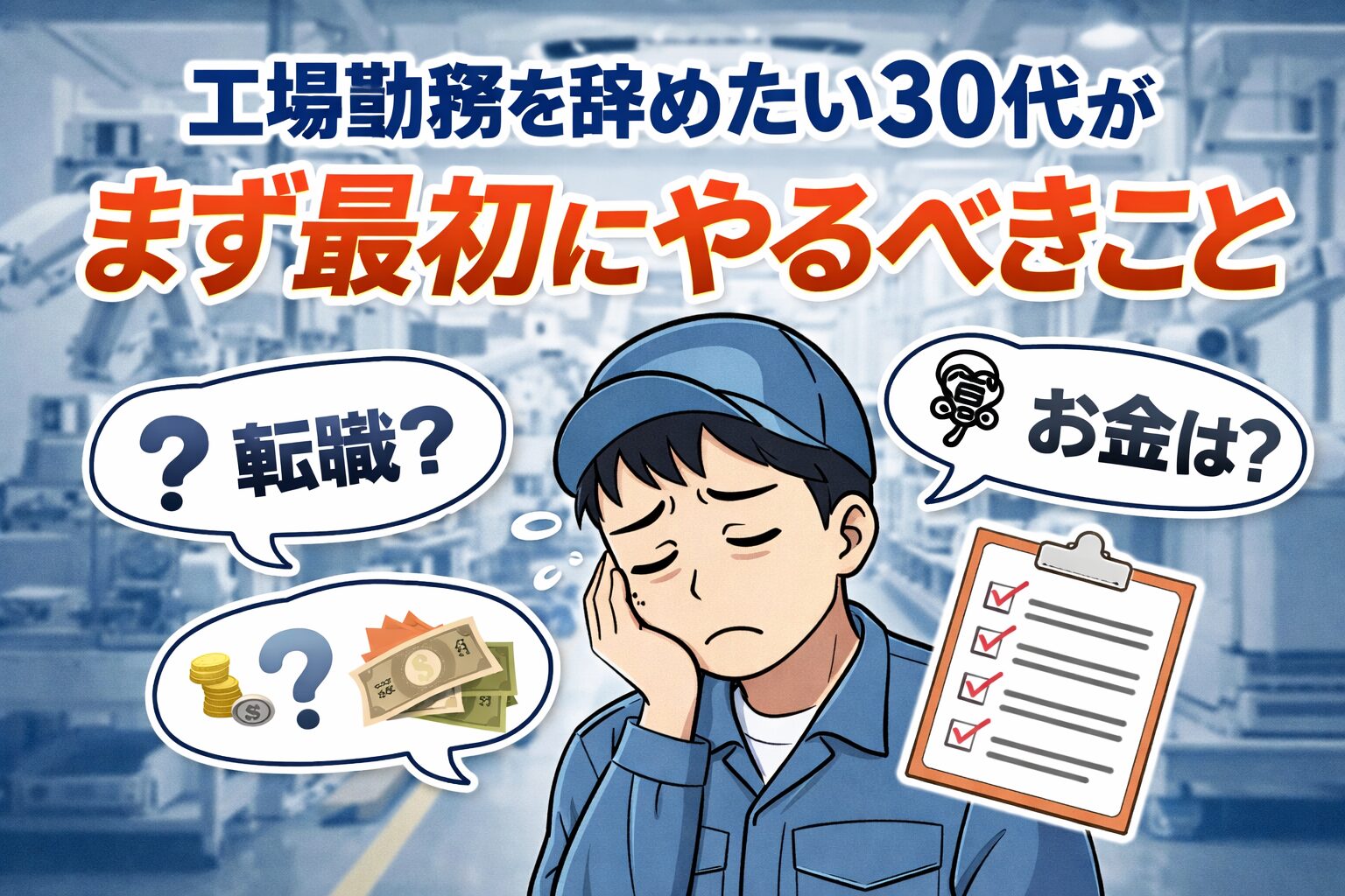 今回は、そんな僕の経験も踏まえて、工場勤務を辞めたい30代がまず最初にやるべきことを正直に書いていく。